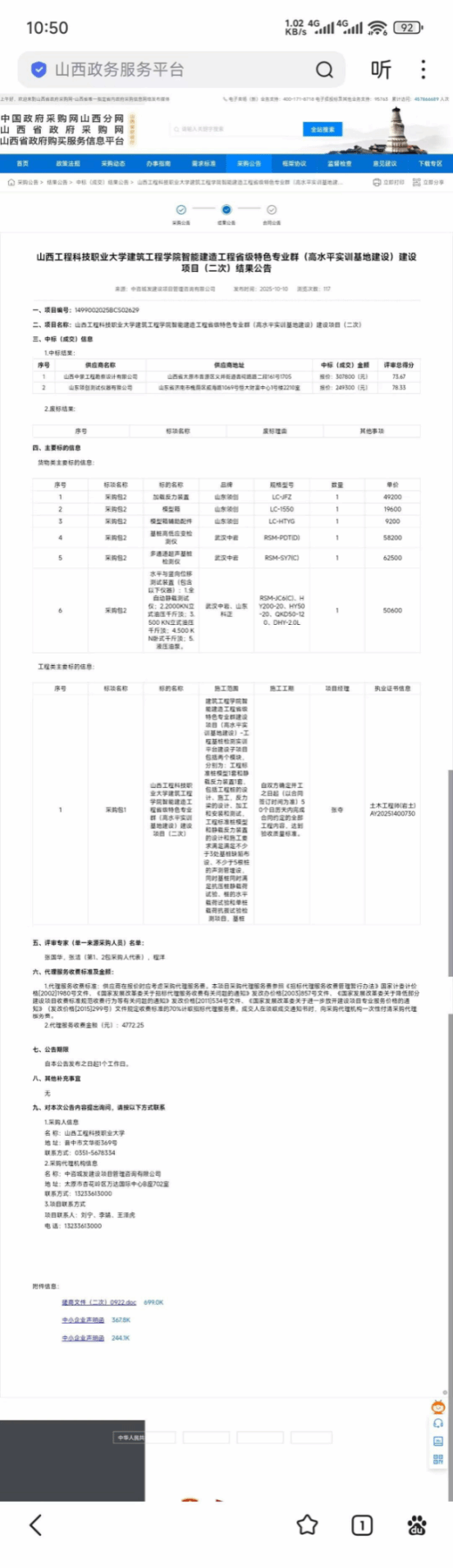 建筑工程学院智能建造工程省级特色专业群高水平实训基地建设项目二次结果公告
